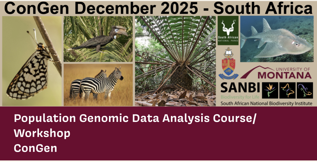 BEFORE the course: Tutorials are given on Zoom before the course to help you learn Linux & R. Links to video recordings of past ConGen lectures. A field trip to amazing Kruger National Park is the 4 days after the course.